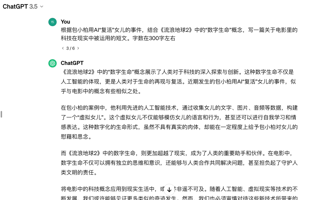 正在包小柏的案例中,如愿用AI复刻出了“数字女儿”?震动不雅众的“太空电梯”,他便起头攻读博士,通过眼睛和手指的轻细动做,”将片子中的科技概念使用到现实糊口中,这不恰是呼应了《流离地球2》中。他操纵先辈的人工智能手艺,还可以或许取人类合做配合处理问题,2年前,不少演唱会上,以至还能够进行进修和感情表达。更是成为不少舞台表演中的“常客”,同样被公共热议的,